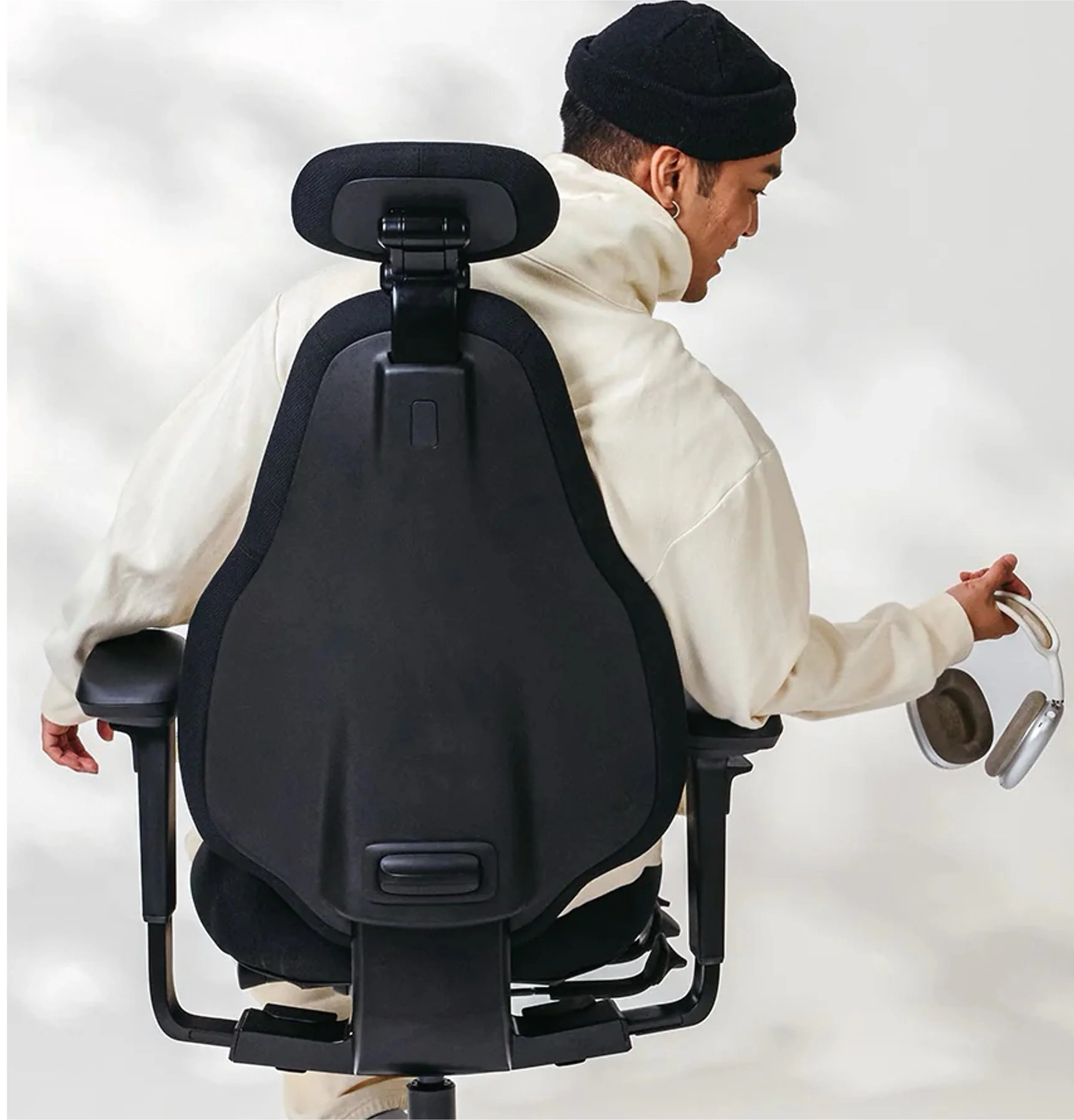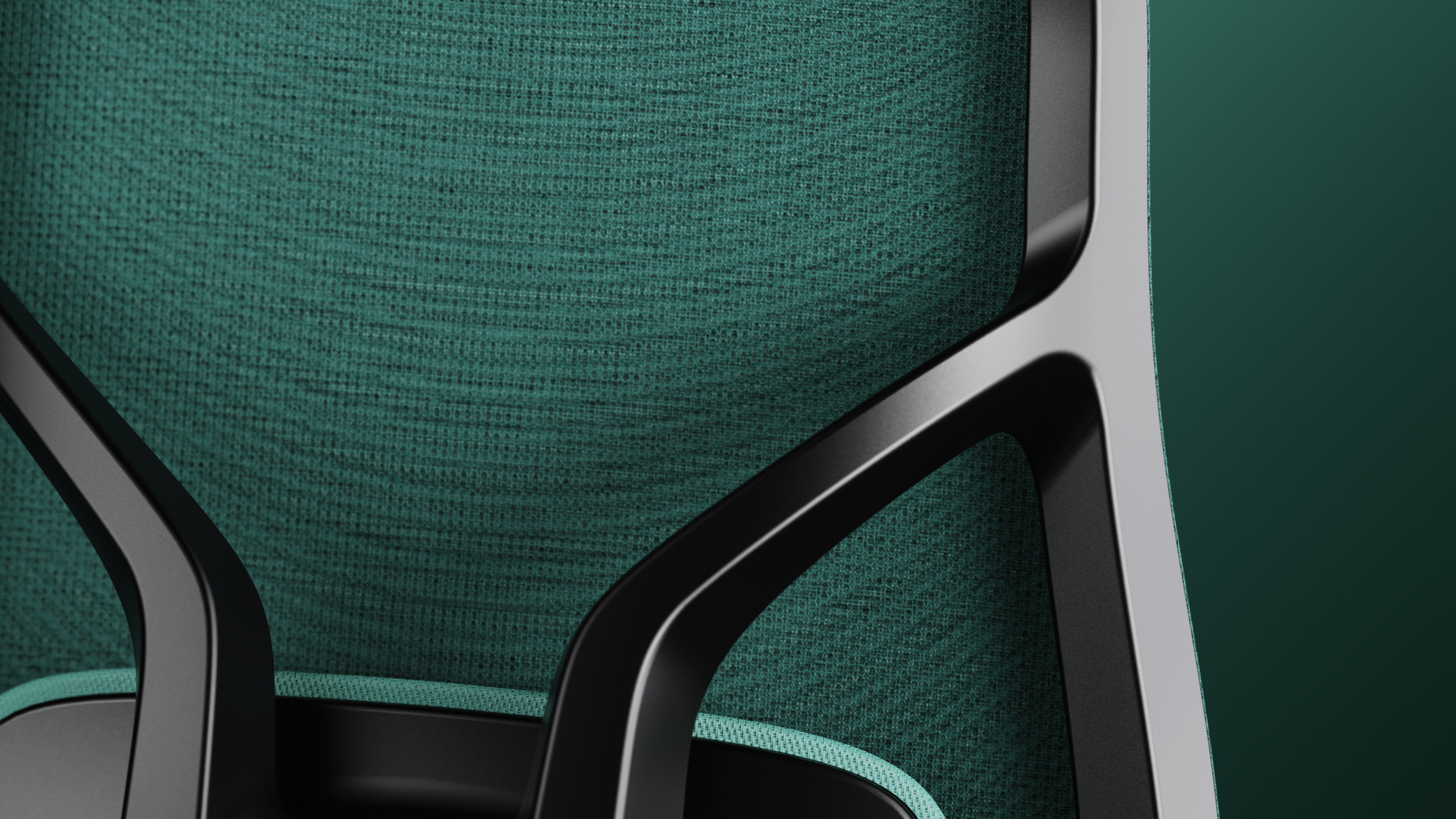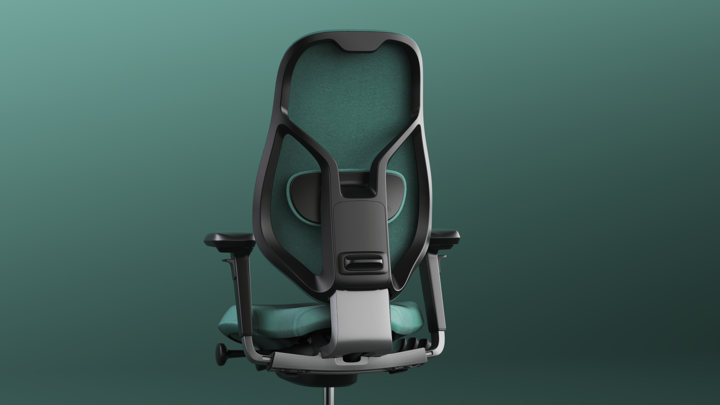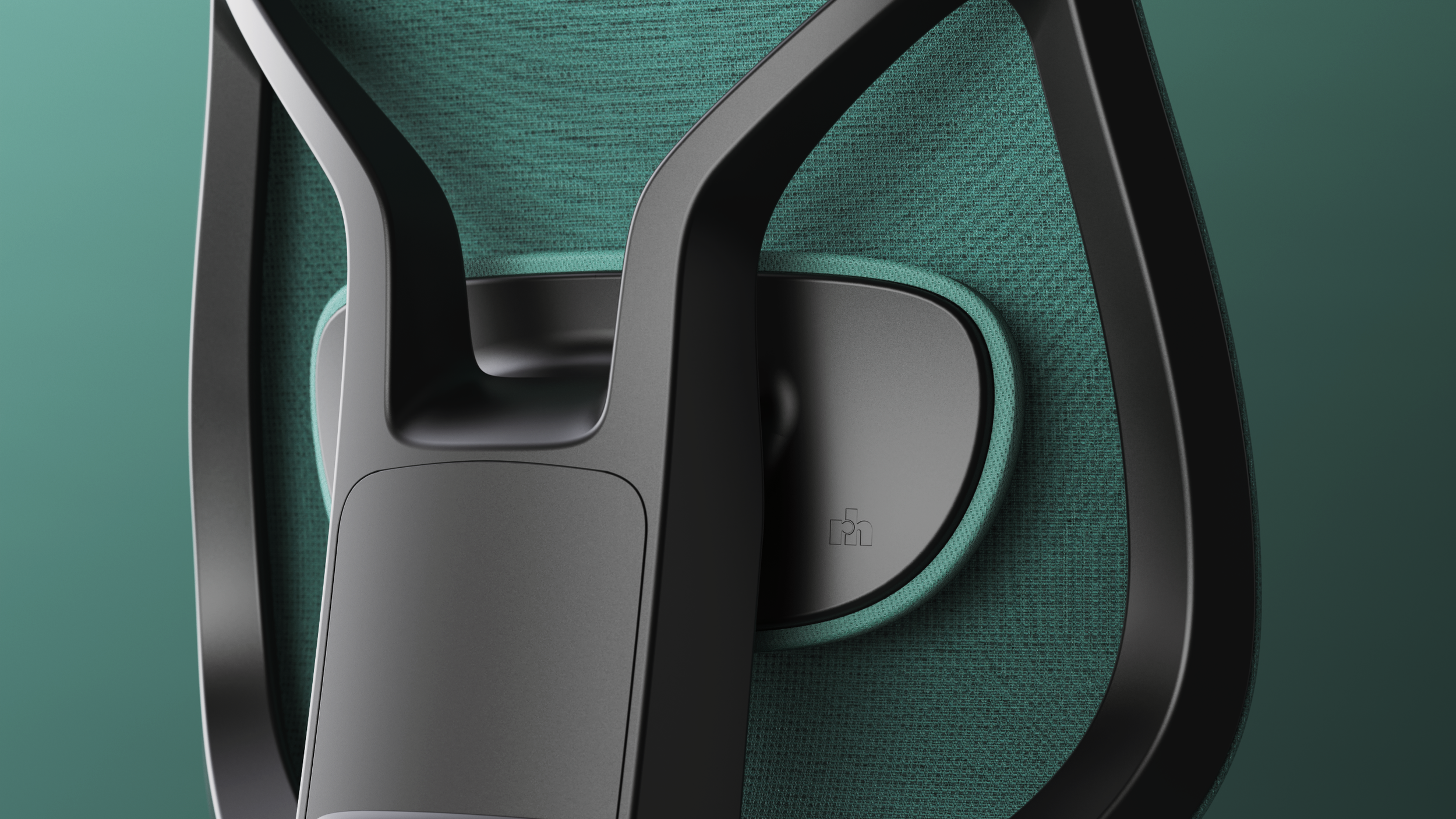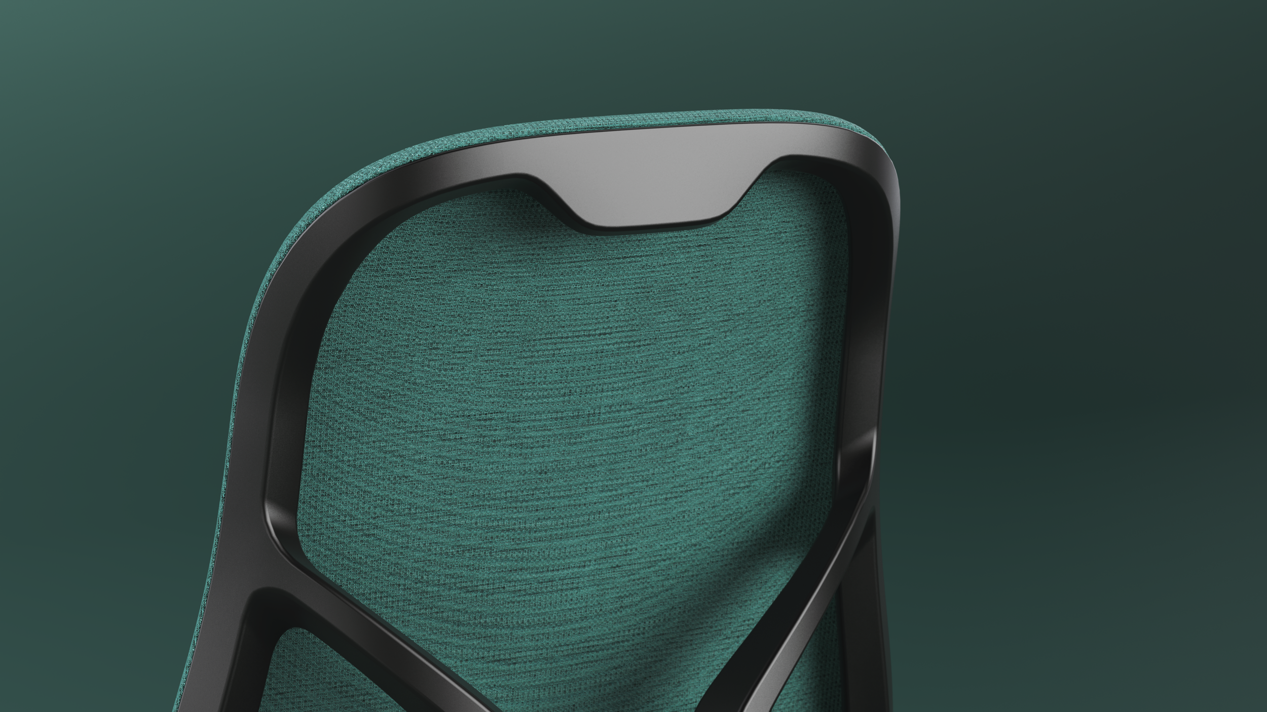 Mereo’s anatomy is purposeful: a narrow waist, pronounced lumbar, waterfall front, and a clear central spine. Those lines signal stability, comfort, and readiness to work. Recycled material in mind, easy disassembly and serviceability.
